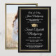 Share the joy of a high school or college graduation with these custom photo black, gold and white announcements. (IMAGE PLACEMENT TIP: An easy way to centre a picture exactly how you want is to crop it before uploading to the Zazzle website.) This formal style template includes parents' and graduate's names, as well as any wording of your choice, such as party invitation details, special honours, degree title, favourite inspirational quote, graduate's contact info, future education plans, or new job position. All text is simple to personalise. Design features a modern faux gold foil border & mortar board cap, elegant script calligraphy, traditional typography, and one photo of your choice, such as a senior picture or image from the commencement ceremony. Please note that gold is printed colour, not metallic foil. These graduation announcement cards are a trendy and chic way to share your special day celebration with family and friends. Congratulations to the graduate!