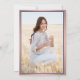 Share the joy of a high school or college graduation for her with these custom photo navy blue, white and pink announcements. (IMAGE PLACEMENT TIP: An easy way to centre a picture exactly how you want is to crop it before uploading to the Zazzle website.) This formal style template includes parents' and graduate's names, as well as any wording of your choice, such as party invitation details, special honours, degree title, favourite inspirational quote, graduate's contact info, future education plans, or new job position. All text is simple to personalise. Design features a modern dark blue ombre background, faux rose gold foil border & mortar board cap, elegant script calligraphy, traditional typography, and one photo of your choice, such as a senior picture or image from the commencement ceremony. Please note that rose gold is printed colour, not metallic foil. These graduation announcement cards are a trendy and chic way to share your special day celebration with family and friends. Congratulations to the graduate!