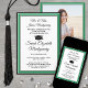 Share the joy of a high school or college graduation with these custom photo green, white and black announcements. (IMAGE PLACEMENT TIP: An easy way to centre a picture exactly how you want is to crop it before uploading to the Zazzle website.) This formal style template includes parents' and graduate's names, as well as any wording of your choice, such as party invitation details, special honours, degree title, favourite inspirational quote, graduate's contact info, future education plans, or new job position. All text is simple to personalise. Design features a modern white background, black mortar board cap, elegant script calligraphy, traditional typography, and one photo of your choice, such as a senior picture or image from the commencement ceremony. These graduation announcement cards are a trendy and chic way to share your special day celebration with family and friends. Congratulations to the graduate!