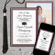 Share the joy of a high school or college graduation with custom photo maroon, white and black announcements. This formal style template includes parents' and graduate's names, as well as any wording of your choice, such as party invitation details, special honours, degree title, favourite inspirational quote, graduate's contact info, future education plans, or new job position. All text on this template is simple to personalise. The maroon and white bordered design features a black mortar board cap, elegant script calligraphy, classic traditional typography, and one photo of your choice, such as a senior picture or image from the commencement ceremony. These graduation announcement cards are a stylish way to share your special day celebration with family and friends. Congratulations to the graduate!