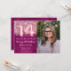 Photo 14th Birthday Invitation Girly Magenta and Pink Glitter 14th birthday party invitation for a 14 year old girl with modern script writing and fun foil balloons.