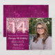 Photo Girl Magenta Pink Glitter 14th Birthday Invitation