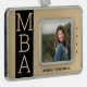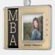 A photo MBA graduate ornament with a gold tone (non-foil) and black colour scheme. It shows the degree, name, and year. Simply add your photo and information, add this ornament to your cart, and have a keepsake of this major achievement.