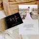 This elegant modern wedding thank you card features a border of gold faux glitter on a black background. The customisable text combines the words "Thank You" in gold-coloured handwriting script and the names of the bride and groom in italic font. Customise the inside of the card with your favourite horizontal wedding photo and a personal message to your guests.