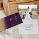 This elegant modern wedding thank you card features a border of gold faux glitter on a purple background. The customisable text combines the words "Thank You" in gold-coloured handwriting script and the names of the bride and groom in italic font. Customise the inside of the card with your favourite horizontal wedding photo and a personal message to your guests.