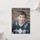 This design features a graduation photo announcement card, graduate picture invitation, with the class of your year script, classic calligraphy typography font, a modern trendy stylish, for an elegant grad party, high school or college commencement, a simple crimson and gold, senior invite, with 1 photo full bleed edge template