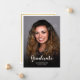 This graduation announcement features graduate's photo, name, graduation year, along with more information and messages on the back .