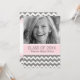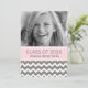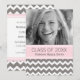 Graduation announcement custom photo card in elegant light pastel baby pink, grey and white casual and retro chevrons zigzags stripes pattern. Customise this grad photo card by adding the year of your graduation, your own photo, and your graduation details.