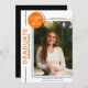 Photo Graduation Modern Script Black Orange Announcement features your favourite photo with the simple text "Graduate" and your name and personalised graduation details. Personalise by editing the text in the text boxes provided and adding your favourite photo. Created by ©Evco Studio www.zazzle.com/store/evcostudio