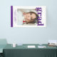 Photo Graduation Party Elegant Modern Script Banner Party Sign feature your favourite photo with the simple purple text "Grad (year)" and your name and personalised graduation details on the front. Perfect for the grad as a graduation gift or graduation party decor. Created by ©Evco Studio www.zazzle.com/store/evcostudio