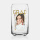 Photo Graduation Party Elegant Modern Script Personalised Can Glass Beer Glass feature your favourite photo with the simple gold text "Grad (year)" and your name and personalised graduation details. Perfect for a graduation party. Created by ©Evco Studio www.zazzle.com/store/evcostudio