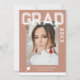 Photo Graduation Party Elegant Modern Script Invitations feature your favourite photo with the simple white text "Grad (year)" and your name and personalised graduation details on the front on a soft brown background. On the reverse add an additional picture with your graduation invitation information below. Personalise by editing the text in the text boxes provided. Created by ©Evco Studio www.zazzle.com/store/evcostudio