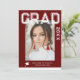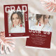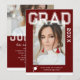 Photo Graduation Party Elegant Modern Script Invitations feature your favourite photo with the simple white text "Grad (year)" and your name and personalised graduation details on the front on a burgundy background. On the reverse add an additional picture with your graduation invitation information below. Personalise by editing the text in the text boxes provided. Created by ©Evco Studio www.zazzle.com/store/evcostudio