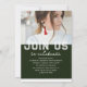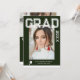 Photo Graduation Party Elegant Modern Script Invitations feature your favourite photo with the simple white text "Grad (year)" and your name and personalised graduation details on the front on a green background. On the reverse add an additional picture with your graduation invitation information below. Personalise by editing the text in the text boxes provided. Created by ©Evco Studio www.zazzle.com/store/evcostudio