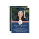 Graduation party invitation custom photo card in peach pink, dark navy blue and white modern design. Customise this grad photo card by adding the year of your graduation, your own photos, and your graduation party details.