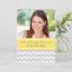 Graduation party invitation custom photo card in elegant and sophisticated bright lemon yellow, grey and white fun and modern zigzags chevron stripes pattern. Customise this grad photo card by adding the year of your graduation, your own photo, and your graduation party details.