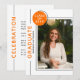 Photo Graduation Party Modern Script Black Orange Invitations feature your favorite photo with the simple text "Graduate" and your graduation party invitation information on the reverse. Personalize by editing the text in the text boxes provided and adding your favorite photo. Created by ©Evco Studio www.zazzle.com/store/evcostudio