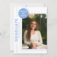 Photo Graduation Party Modern Script Blue Invitations feature your favorite photo with the simple text "Graduate" and your graduation party invitation information on the reverse. Personalize by editing the text in the text boxes provided and adding your favorite photo. Created by ©Evco Studio www.zazzle.com/store/evcostudio