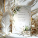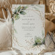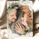 This invitation captures the essence of love intertwined with nature's elegance. The front of the card features a tender photograph of the couple-to-be, framed by a lush cascade of eucalyptus leaves and faux gold branches, symbolising their growing love. The backside continues the theme with a full display of the watercolor greenery and golden botanicals surrounding the wedding details. The inviting hues of olive, jade, and forest green mix with the rich gold tones, creating an invitation that is both heartfelt and luxuriously stylish.