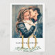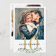 Modern botanical greenery wedding reception table number sign featuring one or two photos of the couple (engagement photos or dating pictures through the years) for entertaining wedding guests as well as identifying tables. Duplicated on both sides for two-sided viewing. CHANGES: The gold and black text colours can be changed to coordinate with your colour theme and the greenery can be deleted if not desired. ASSISTANCE: For help with design modification or personalisation, colour change, resizing, transferring the design to another product or you would like coordinating items, contact the designer BEFORE ORDERING via Zazzle Chat or makeitaboutyoustore@gmail.com.