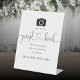 Photo Guest Book Black And White Heart Script Pedestal Sign