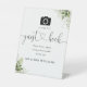 Photo Guest Book Greenery Floral Heart Script Pedestal Sign