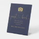 Photo Guest Book Navy Blue And Gold Script Pedestal Sign