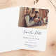 Modern and Elegant Handwritten Script Photo Save the Date Wedding Card. Our Save the Date announcement card features modern typography and a chic and stylish layout, the card has an economic yet elegant design that will stand out from the crowd and will be appreciated by all recipients.
