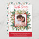 Design with gorgeous watercolor frame with holiday cookies and greenery encasing your photo. Above phrase "'Tis the Season" in red watercolor hand written Script typography. Border in red on the bottom with text areas for your own message and name(s). On the back sweet watercolor red and green pattern with greenery, holly, stars and Christmas tree cookies. Collection with coordinating products available.
