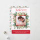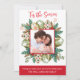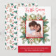 Design with gorgeous watercolor frame with holiday cookies and greenery encasing your photo. Above phrase "'Tis the Season" in red watercolor hand written Script typography. Border in red on the bottom with text areas for your own message and name(s). On the back sweet watercolor red and green pattern with greenery, holly, stars and Christmas tree cookies. Collection with coordinating products available.