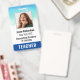 Custom Teacher ID Cards. Customise it with your own text, profile photo and background colour.