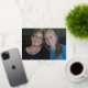 botanical blue pattern - A modern look for a holiday photo card. A gold foil word - Season's Greetings - is on top of the photo and holiday greeting.