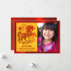 “Happy New Year” red foil typography in both Chinese and English, a stunning visual of a graphic red faux foil horse, flowers and cloud, your names, and the photo of your choice overlay a traditional Asian yellow circle pattern and brushed red faux foil border on the front. On the back, a cloud and star visual, along with your personal message, overlay a brushed red faux foil background. Feel the warmth and joy of the holiday season whenever you send this stylish yet modern, personalized 2026 Chinese Lunar New Year of the Horse photo greeting card. Make sure someone special receives this greeting!