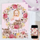 Pretty birthday card for a special little girl with her photo and custom messages inside. The design features a pretty floral wreath and matching border with full bloom roses, delicate flowers and woodland deer. Inside the sample wording is fully editable and currently reads "hip hip hooray [name is age] today .. have a magical birthday full of fun and surprises", which you can personalize as you wish.