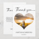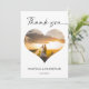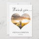Elegant wedding thank you template card featuring a hand lettered typography script 'Thank you' , wedding photo in heart shape and names of newlyweds (+ wedding date) . Mentioned design on the white space gives a decent touch. Customise this card by adding your own wedding photo and personal info on both sides.