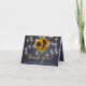 Rustic elegant fall wedding stylish PHOTO (horizontal landscape orientated) thank you template card on dark midnight navy blue chalkboard background featuring beautiful sunflower bouquets and strings of twinkle lights. Fill in your information in the spots and upload your photo inside the card, You can choose to customise it further changing fonts and colours of lettering. ---- The invitation is suitable for elegant summer night or autumn fall rustic countryside or night weddings. --- If you need assistance in customising it, please contact me!