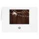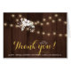 Rustic elegant winter wedding stylish PHOTO (horizontal landscape orientated) thank you template card on dark brown barn wood background featuring beautiful white flower bouquets and strings of twinkle lights. ++++++++++ Personalise it with your text, photo and sgnature! You can choose to customise it further changing fonts and colours of lettering. ++++++++++++ The invitation is suitable for elegant winter rustic countryside | farmhouse weddings.