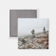 Aimant, photo roche en équilibre, inukshuk sur une plage, dans la brume. Titre: « Équilibre », Alma, N.B., Canada. Marie-Ève LaBadie photographe