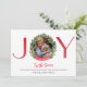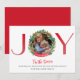 Delight friends and family with this attractive photo holiday card, with watercolor greenery surrounding your image in letter "O" in "JOY". Rest of the letters in red watercolor block typography. Phrase "'Tis the Season" in red watercolor modern hand written Script and two text sections for your own message and name(s). Back in attractive red colour. Collection with coordinating products available including envelopes.