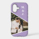 Elevate your everyday style with this Photo Lavender Monogram iPhone 17 Case, where elegance meets personalization. Designed in a soothing lavender hue, it offers a soft, modern aesthetic that complements any look. The customizable photo feature allows you to showcase a favorite memory, making your phone uniquely yours. A sleek monogram accent adds a refined touch, balancing charm and sophistication. Crafted from durable, high-quality materials, it provides reliable protection against drops and scratches. The slim, lightweight design ensures a comfortable grip while maintaining full access to ports and buttons. Its glossy finish enhances the vibrancy of your photo and monogram for a polished, premium feel. Perfect as a thoughtful gift or personal statement piece, this lavender case turns your iPhone 16 Pro Max into a stylish reflection of you.