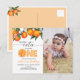 Photo Little Cutie Orange 1st Birthday Invitation Postcard
