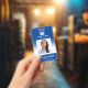 Photo logo blue gradient employee name title id badge