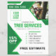 Tree services landscaping promotional flyer with easy to personalise templates with company logo, business photo, phone number, discount offer, website, services and call to action. Perfect flyer for tree cutting, tree diagnostic, and tree removal businesses.