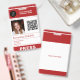 Personalised employee id card - identification elegant red and white badge with your custom company logo, photo, name, title, QR code (automatically generated simply with your URL address), and other details - if needed. +++++++++++++ Easy to personalise with your details on both sides! +++++++++++++++ Suitable for corporate journalists, photographers, field reporters, other employees, managers, executives, business office staff, warehouse workers, corporate retail and logistic companies. +++++++++ Please note that the background colour, fonts, and sizes of text can be changed. You can upload a bar code or add any other info on the backside.