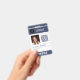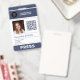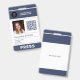 Personalised employee id card - identification elegant navy and white badge with your custom company logo, photo, name, title, QR code (automatically generated simply with your URL address), and other details - if needed. +++++++++++++ Easy to personalise with your details on both sides! +++++++++++++++ Suitable for corporate journalists, photographers, field reporters, other employees, managers, executives, business office staff, warehouse workers, corporate retail and logistic companies. +++++++++ Please note that the background colour, fonts, and sizes of text can be changed. You can upload a bar code or add any other info on the backside.