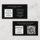 Two-sided customisable black business cards: the front with your photo and information templates, the back with the company logo and QR Code templates. Clean, straightforward template, suitable for companies, businesses, and organisations, big or small.