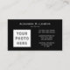 Horizontal double-sided customisable business cards: the front with a square photo and your information, the back with the company's square or round logo and QR Code for the company's website. Clean, straightforward template, suitable for companies, organisations, or businesses, big or small.
