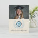 Add your senior's photo to this classic and traditional college graduation invitation announcement with crest and laurel leaf emblem logo. Light powder blue or also available in different colours, or choose "customise further" to customise the colour. This elegant design features a standard crest seal emblem with a book and tree, representing education and growth, along with elegant script writing. It's easy to personalise with your information with an instant preview. Upload your photo, add your information, and mail to friends and family. Formal and traditional classic style graduation invite for boys or girls, guys, men or women of any age or graduate grade level.