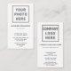 Two-sided customizable vertical business card template: the front with your photo and information, the back with the company logo and information. Clean, straightforward design, suitable for companies or businesses big or small. Black text on white background.