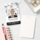 Customisable badge with white marble look background and black border at the bottom. Upload your own logo, photo and barcode and make custom name tags and employee id badges for your company. Easy to use template. You can resize the photo, logo and bar code with the design tool. To resize the photo you first need to unmask it. Fonts and colours except the white part of the gradient are fully customisable.